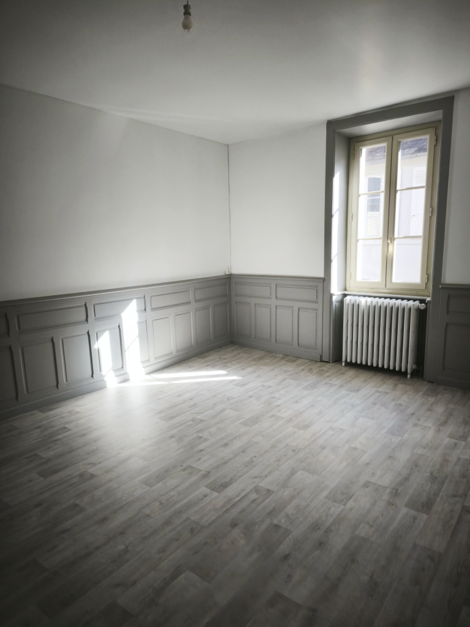 Appartement composé d'une cuisine equipée, salon, 3 chambres, salle d'eau ave wc. et une grande pièce annexe donnant sur petite cour sur l'arrière .Chauffage Fioul. loyer 600 euros