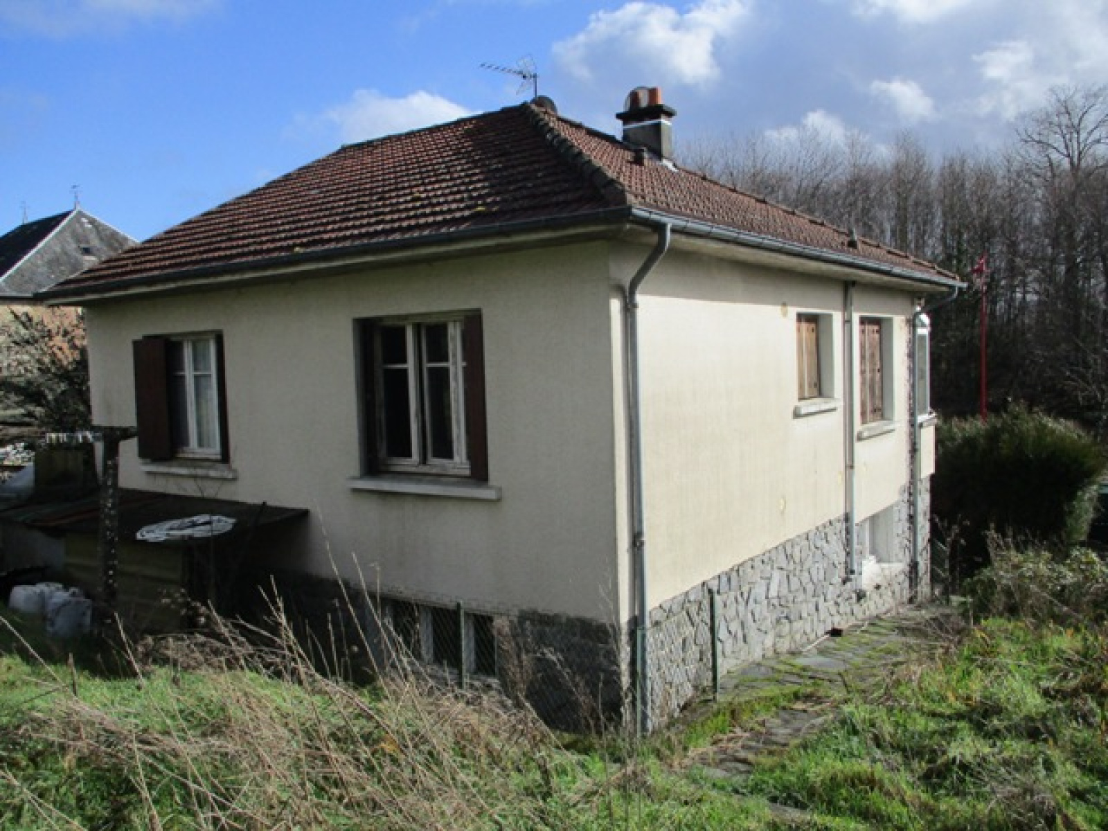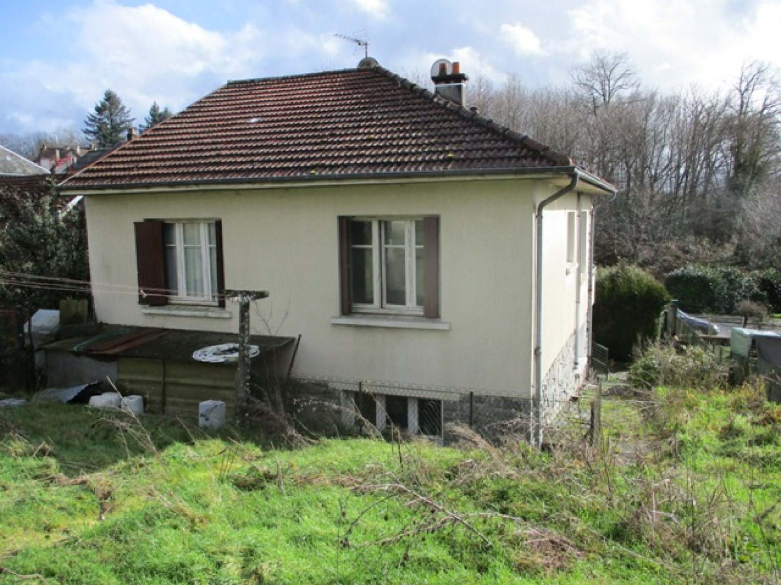 Maison mitoyenne sur 1 côté, sur sous sol, à rénover, composée d'une entrée, cuisine aménagée avec petite véranda, séjour, deux chambres, salle de bains et wc. Au sous sol garage, cave et buanderie. Chauffage central fioul. Terrain de 493 m². DPE ANCIENNE VERSION. Prix : 70 200 euros dont honoraires agence à la charge de l'acquéreur 8 % TTC. Prix hors honoraires 65 001 euros.
